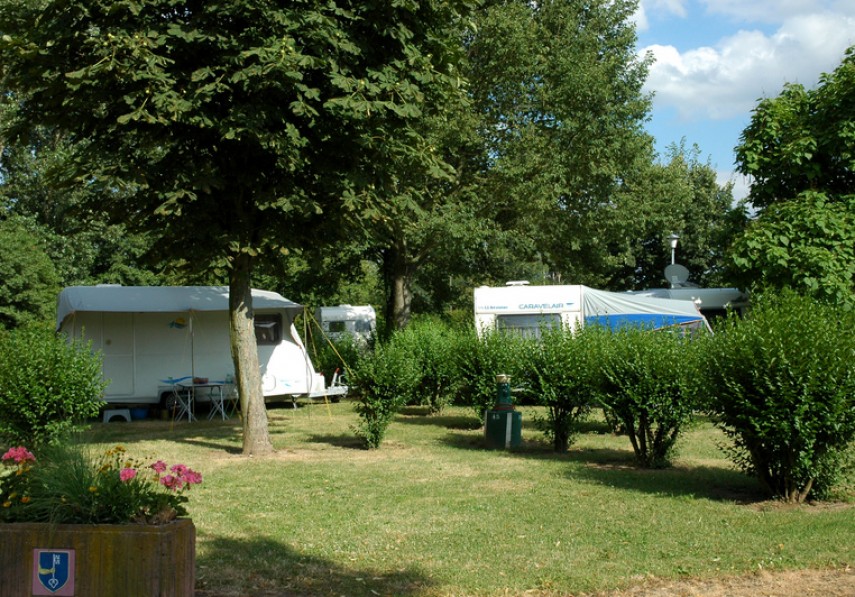 The flat grassy terrain along the stream at Les Reflets de St Pierre campsite offers well-defined pitches for tents, caravans and motorhomes, all equipped with electricity.